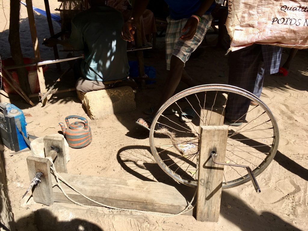Impossible de ne pas tomber sous le charme des cuisinières qui mitonnent leur plat ensemble, en plein air, le sourire aux lèvres. Les tisserands – tous des hommes – qui travaillent aussi dehors, m’impressionnent tout autant, surtout quand je constate l’archaïsme de certains outils ! Traditionnellement, le pagne tissé joue un rôle de premier plan tant lors des rituels entourant la naissance que la mort.