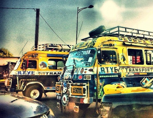 Pas de règles dans mon taxi-brousse : que le plaisir de prendre la plume quand bon me semble pour piger dans la boîte à souvenirs, raconter ceux qui s’y trouveront bientôt, partager mes trouvailles ou simplement délirer sans contrainte. Une bonne manière d’éviter à mes amis le radotage d’une routarde rangée qui change actuellement des couches plutôt que des devises étrangères… 😉