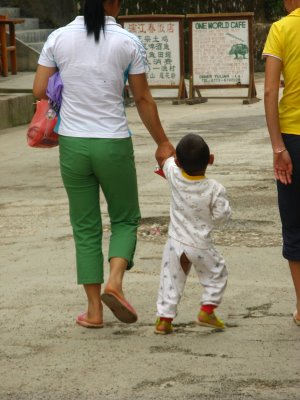 Dans un même ordre d’idée, quelle n’a pas été ma surprise d’apprendre que les bébés ne portent pas de couches en Chine ! Leurs habits sont pourvus d’une fente à l’arrière (voir la photo d’E.Savage/D. Paquette), ce qui leur permet de déféquer quand bon leur semble…