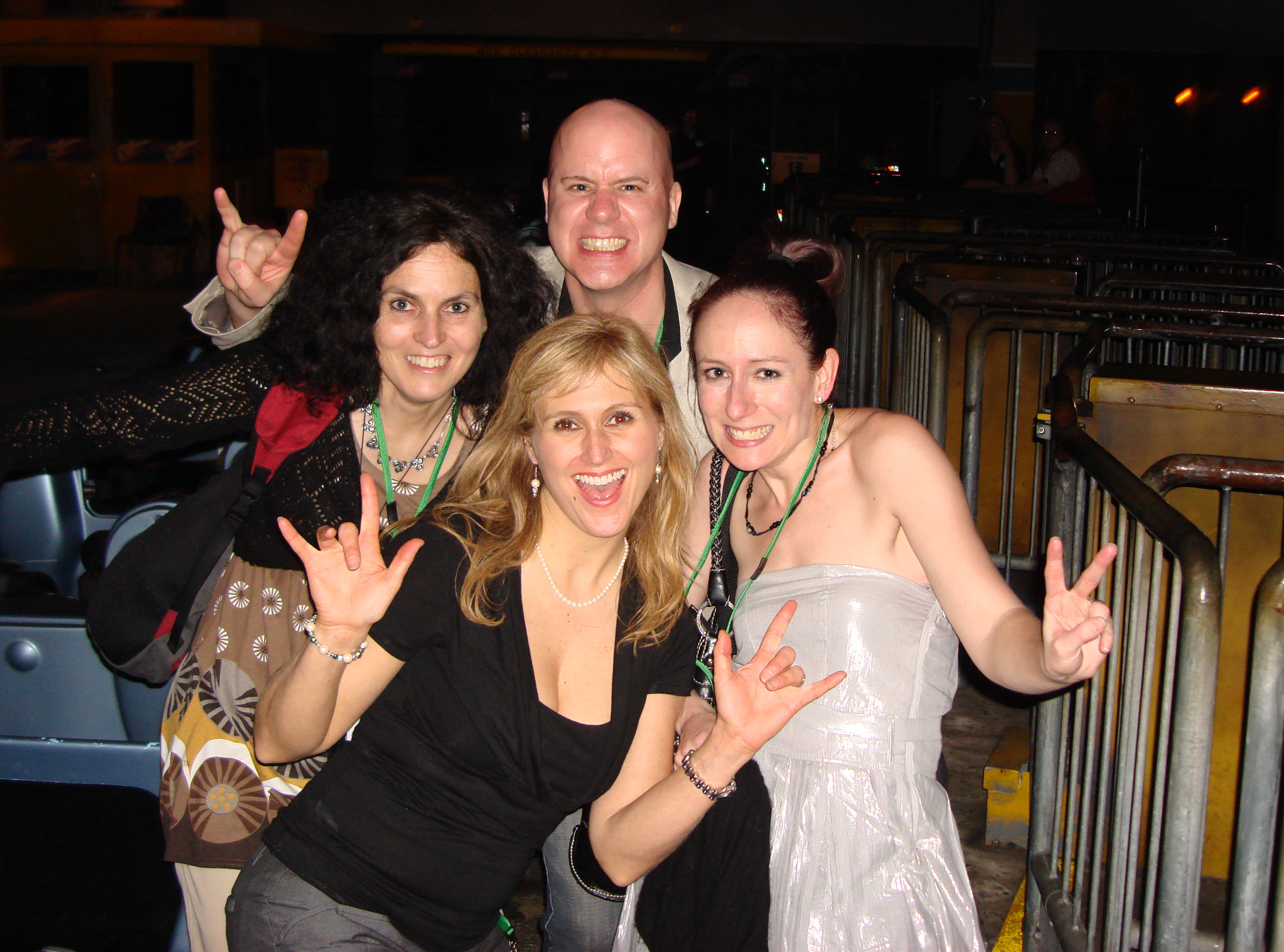 Derrière: Gaëlle de Familles d'aujourd'hui et Steve de Toronto Sun. Devant: Jennifer de Citytv et moi. Photo prise avant notre cinquième tour de Rock n' roller coaster...