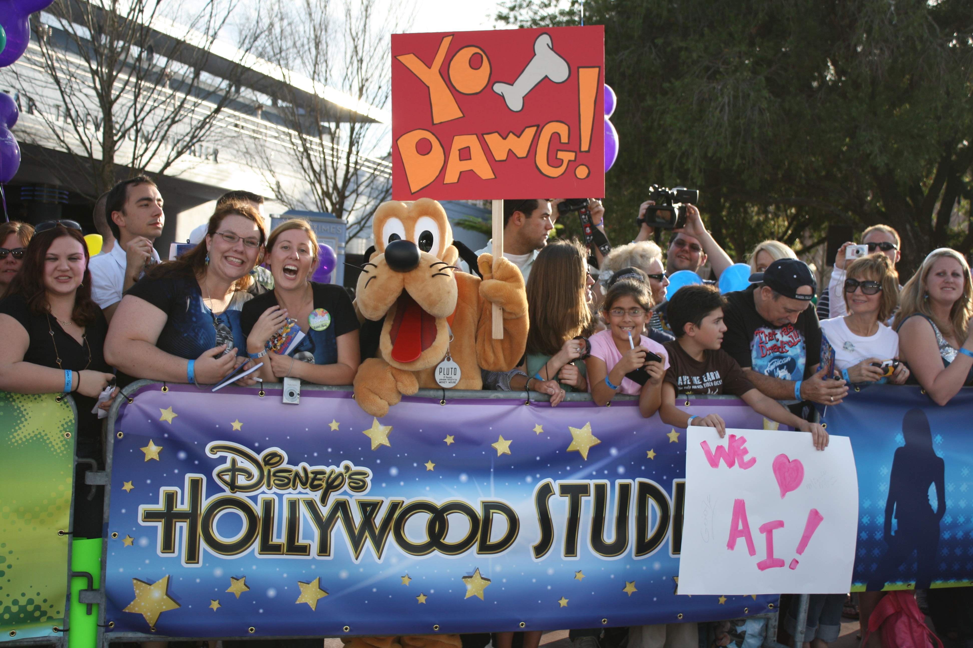 Pluto s'est joint aux fans en attendant l'arrivée des stars, pour le plus grand plaisir de ces derniers