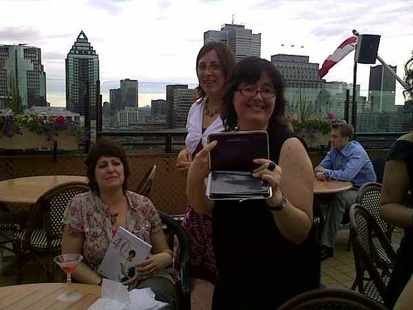 (Dans l’ordre: Nadine et Nancy qui tirent les noms de leur boîte de lingettes; Nancy qui montre fièrement l’un des cadeaux remis à toutes les participantes, soit un mini-album signé WonderBra; votre «humble serviteur» et Mélanie Thivierge, rédactrice en chef de Coup de pouce; Madeleine Jean et Marie-Claude Lortie de La Presse; Nadine Mercure et Anne-Marie Dupras; Nadine Descheneaux, moi et Anne-Marie Dupras)