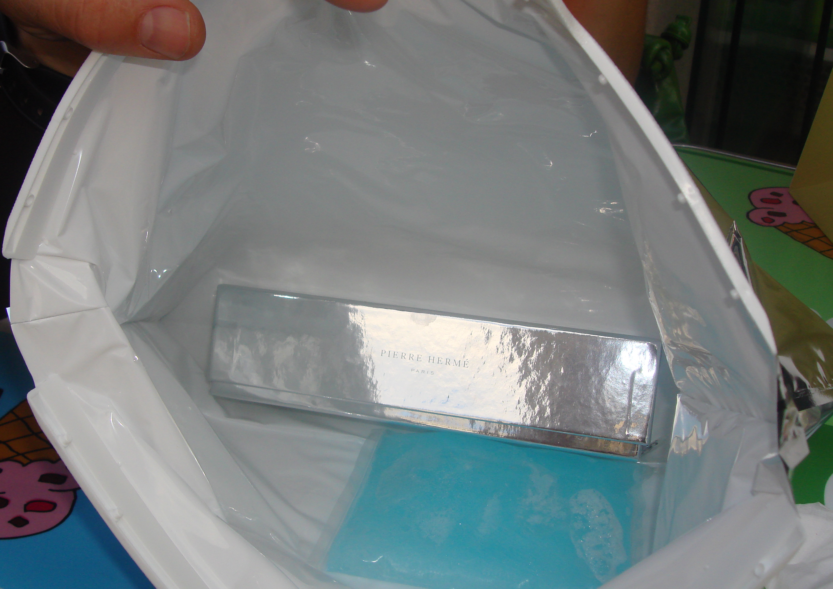 Détail intéressant, on remet un sac isotherme et un ice pack aux clients pendant la belle saison pour que les petits gâteaux restent bien au frais.