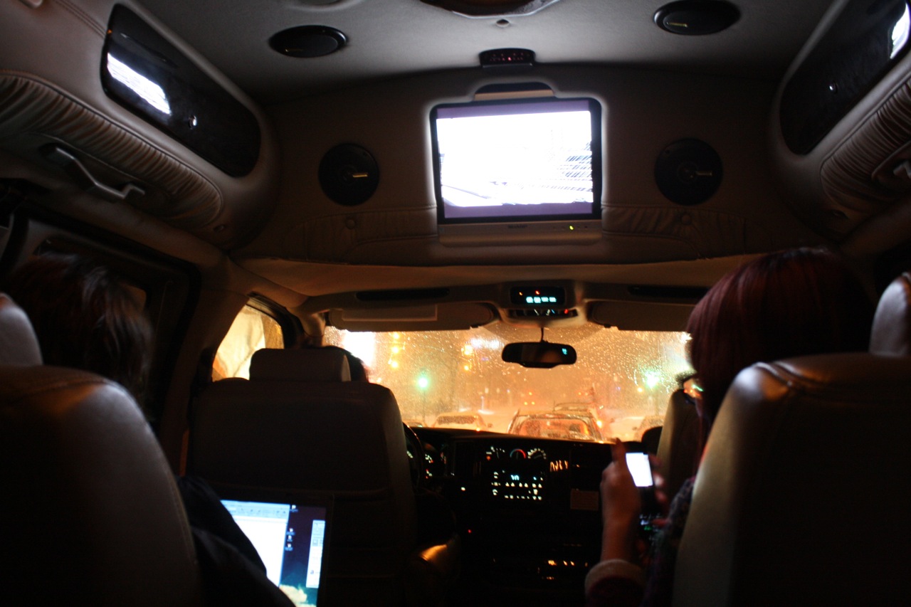 Arrivée aux studios de Rock Détente et NRJ vers 6h45 ce matin. Impossible de me perdre dans le banc de neige avec mon manteau Lolë ORANGE! (Crédit: Caroline Cloutier pour Ztele.com)
