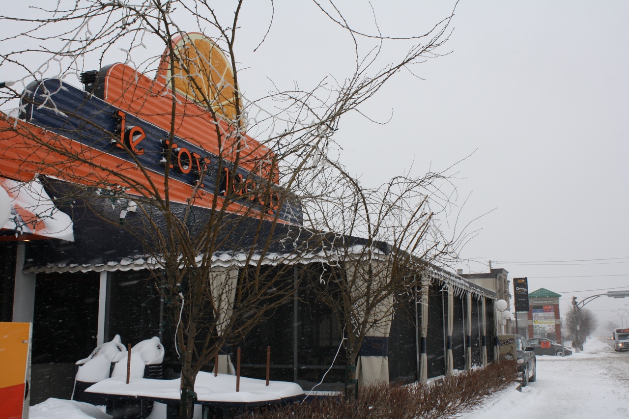 Deux heures plus tard, poutine time! Comment venir dans la ville qui consacre un festival à notre plat national sans goûter la meilleure du coin? Suite à un sondage éclair sur Twitter, hier, j’ai été intriguée par le Roy Julep, qui clame être l’inventeur de ce «condensé de bonheur». Ne reculant devant rien, mes collègues et moi nous sommes offert un voyage dans le temps sous le signe de la grosse frite dégoulinante. Je vous fais visiter…