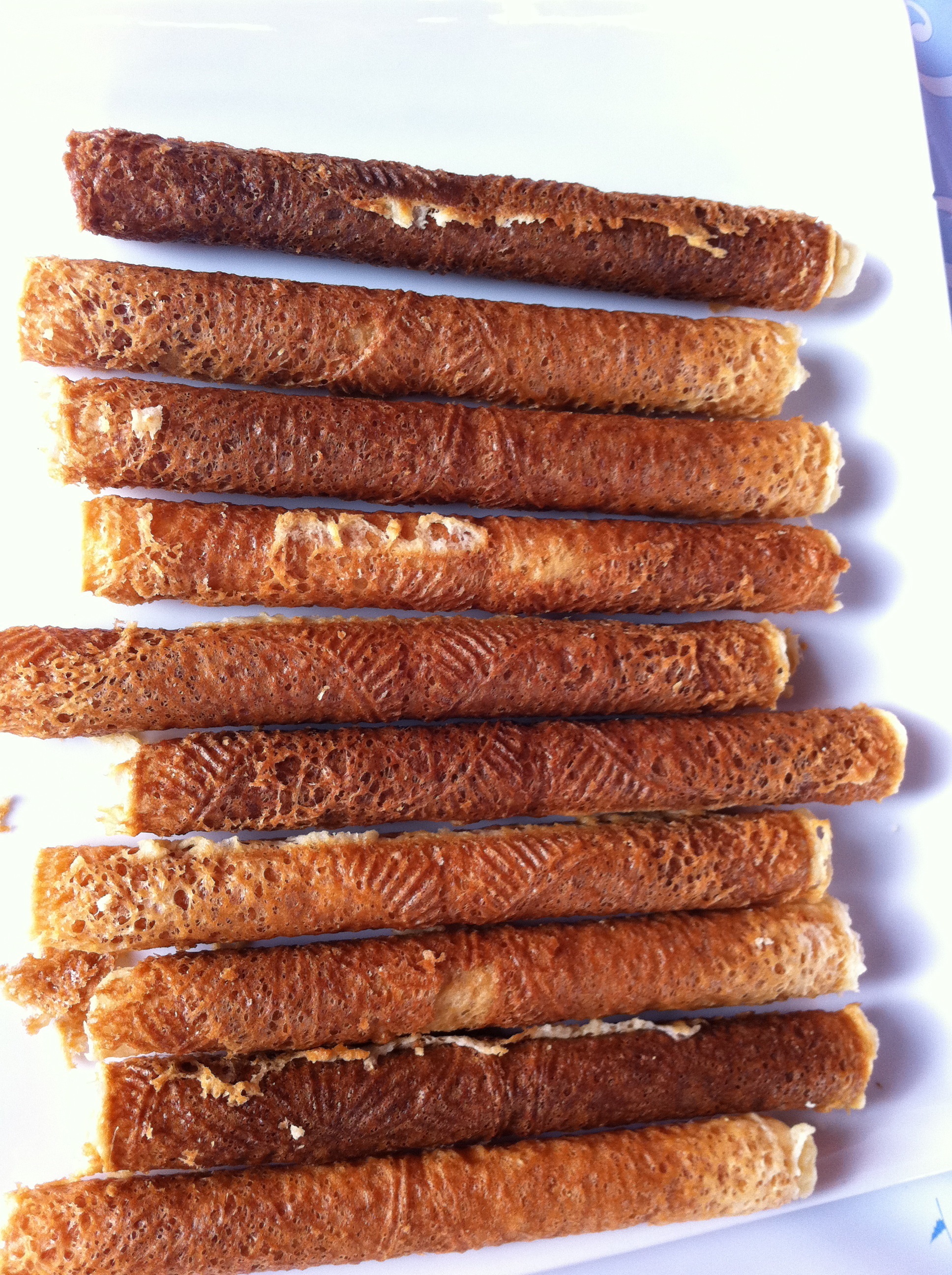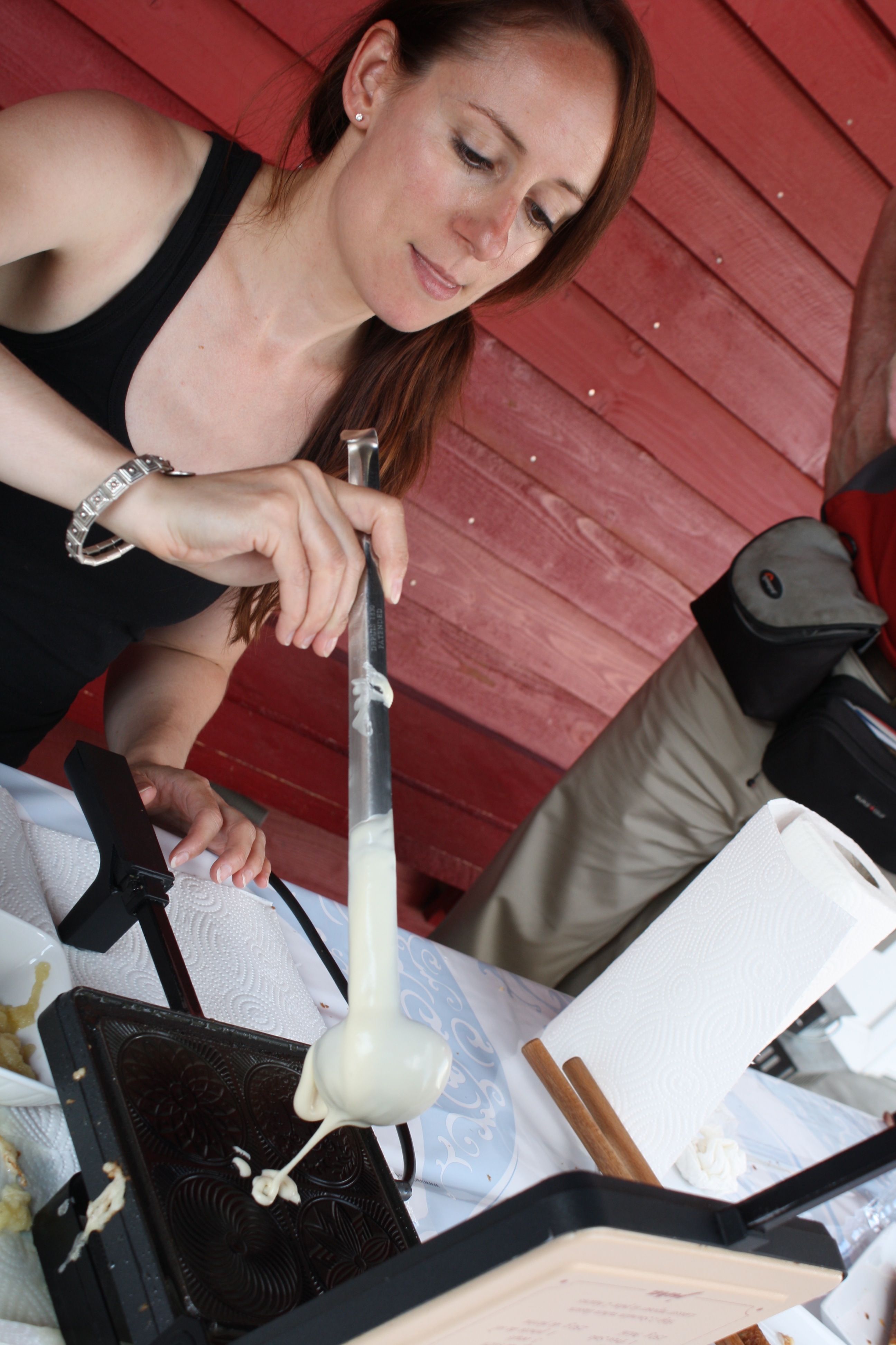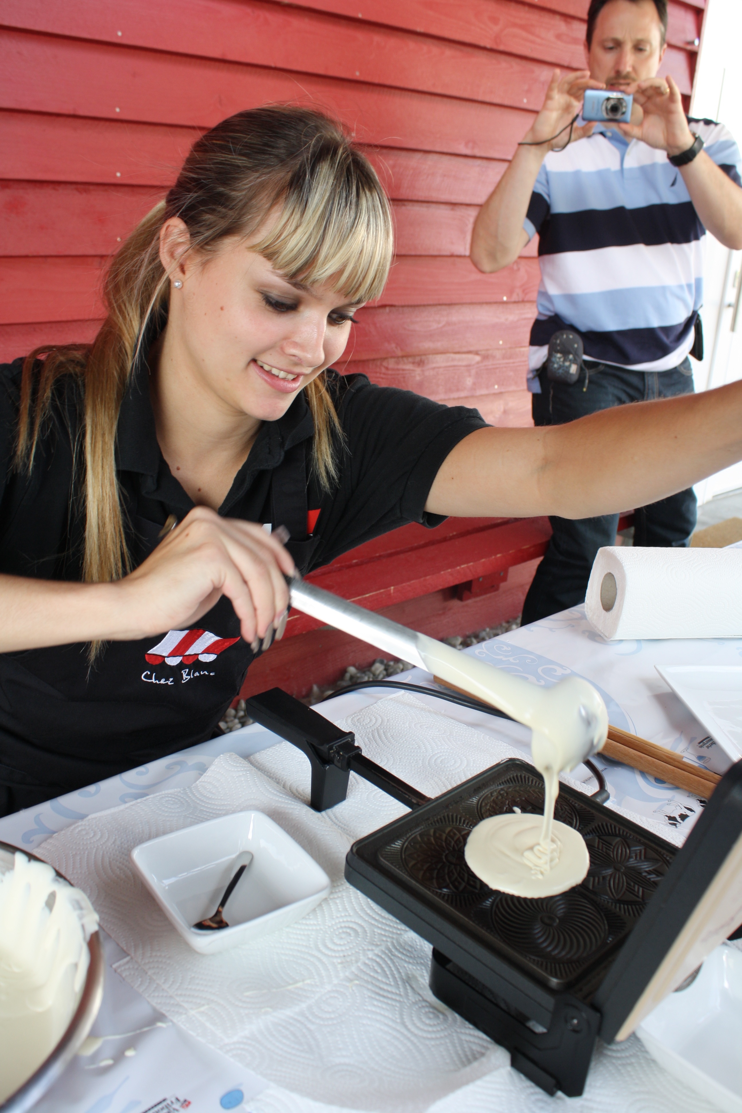 En plus d’y déguster la meilleure fondue moitié-moitié de ma vie, d’être initiée au menu de La Bénichon et à la meringue accompagnée de crème double (j’en salive encore – j’en ai pris une double portion, que je mangeais à la cuillère comme une soupe), j’y ai appris à rouler des bricelets, gaufres minces et croustillantes qu’on déguste plates ou en rouleaux.
