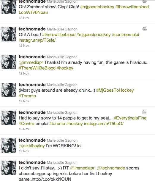 Mais n’importe quelle fille se laisserait «charmer» par un match Canadiens – Bruins au Centre Bell pendant les séries éliminatoires. Prochaine expérience peut-être? 🙂