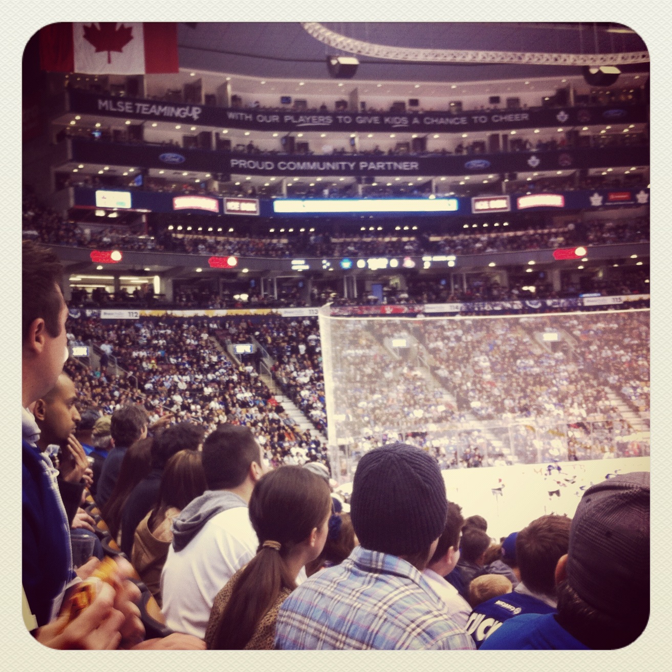 Je pousse les portes sacrées du Air Canada Center un peu après le début du match. Je dois m’excuser auprès de 14 mecs déjà fort imbibés de houblon pour parvenir jusqu’à mon siège.