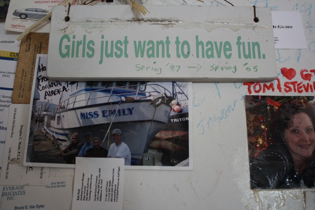 Les murs témoignent du passage des nombreux visiteurs et de quelques célébrités. La tradition est de coller sa carte d’affaires pour laisser sa trace (on me voit me livrer à l’exercice dans la vidéo ainsi que Geneviève Vézina-Montplaisir, juste avant). D’autres accrochent t-shirts, photos ou écrivent simplement de petits mots sur les murs, selon leur inspiration du moment.