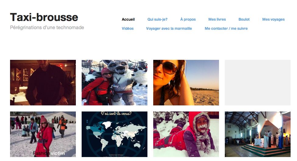 Encore une fois, je fais appel à vous. Je n’arrive pas à choisir le nouveau look de Taxi-brousse. N’ayant aucune connaissance en conception de site Web, je me débrouille avec les maquettes proposées par WordPress (tout le reste m’apparaît beaucoup trop compliqué à gérer et je n’ai pas de «budget design» pour que quelqu’un «bizoune» le tout à ma place). J’avais envie d’un look plus magazine, mais je n’aimais pas particulièrement la version testée au cours des dernières semaines.