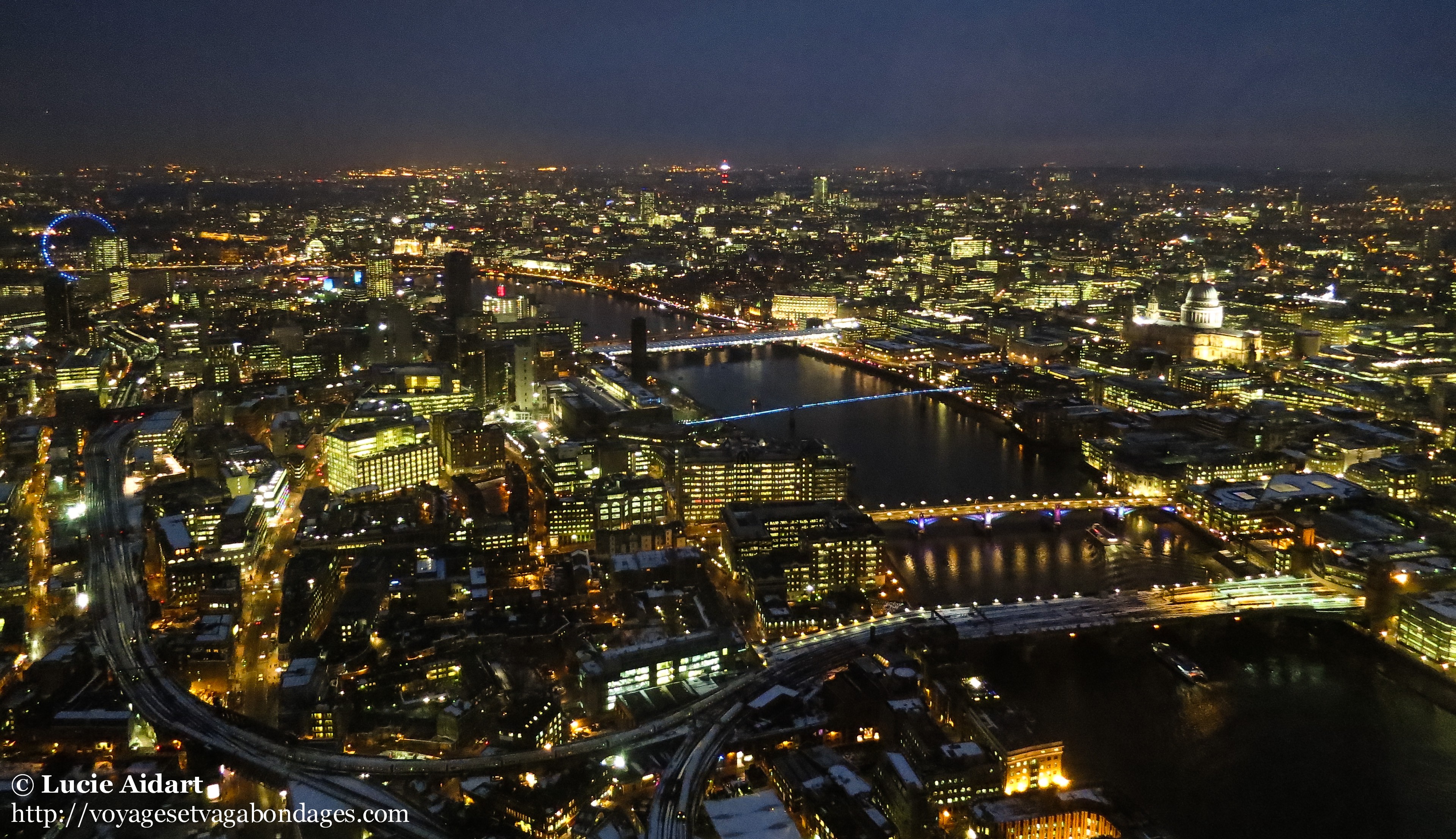 «Le Shard, avec ses 310m, est le plus haut building d’Europe et le 42e plus haut du monde. Inauguré en 2012, il a ouvert ses portes au public en février 2013, donnant ainsi l’accès à la meilleure vue panoramique sur Londres. Une vue à 360° et à 64km à la ronde par beau temps, une vue à couper le souffle qui en émerveillera plus d’un. C’est pour dire, j’y ai passé plusieurs heures à regarder Londres vivre de jour et de nuit.»