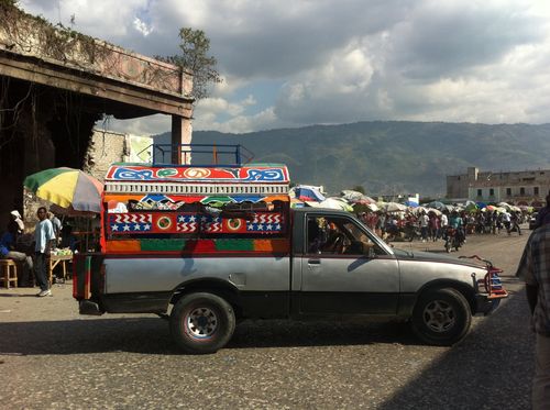L’une des première choses qu’on remarque en Haïti, ce sont les tap-taps, taxis collectifs barriolés souvent porteurs de messages divins. On les a baptisés ainsi parce que pour en descendre, les passagers doivent taper sur le côté du véhicule. Peints à la main, ils sont de véritables oeuvres d’art ambulantes.