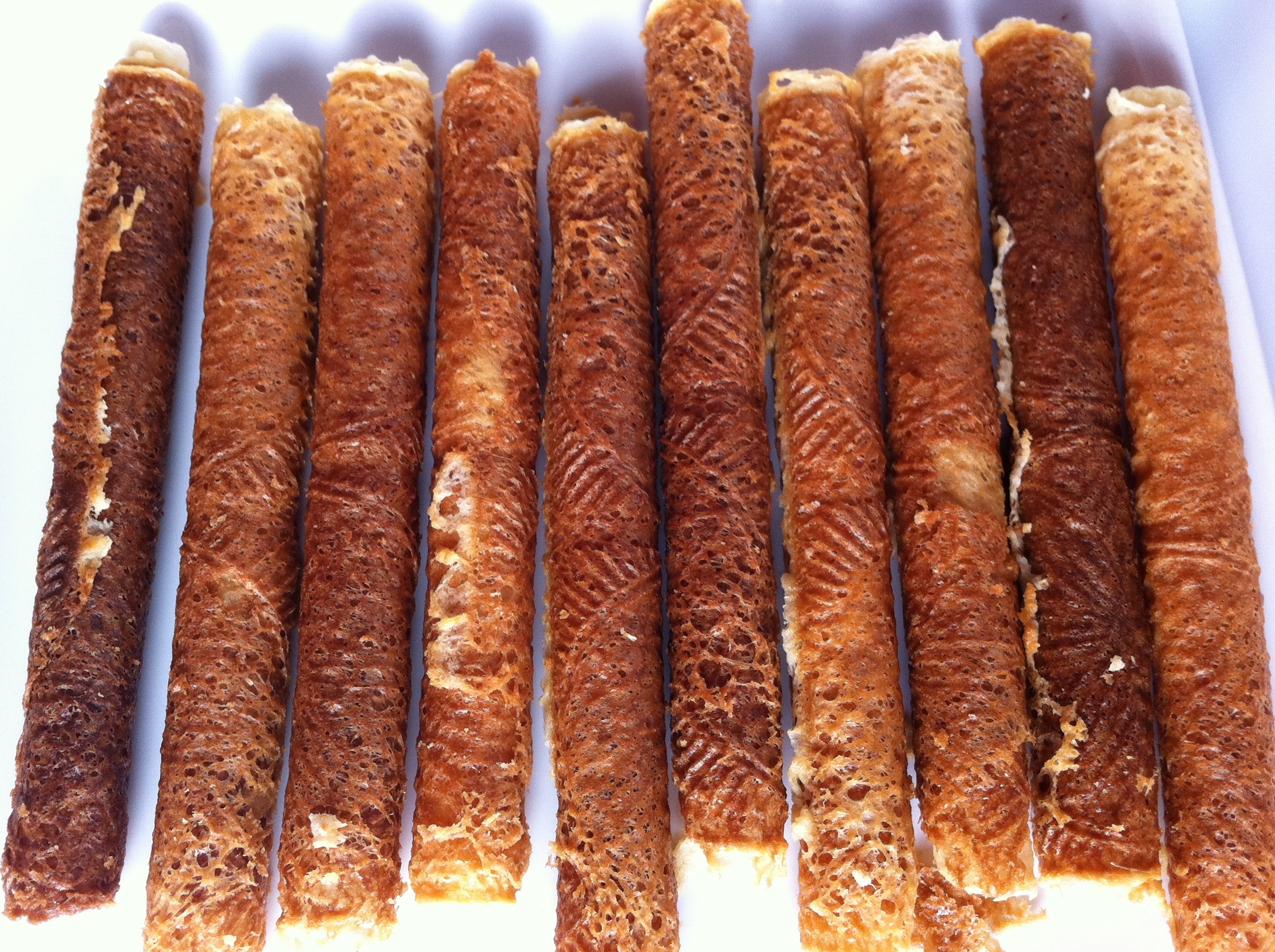 Mama mia! Je ne parle pas allemand, mais diantre! ces délices méritent que je déploie mon vocabulaire italien (m’en reste un autre: ciao!, mais je le garde pour plus tard les bambinos – ah! tiens, un autre!). Imaginez une gaufre bien écrapoutie. Pas très ragoûtant, dit comme ça, mais vous voyez ce que je veux dire: les bricelets sont fins, parfois plats, parfois roulés. Tantôt salés, tantôt sucrés. Et ils contiennent de la crème double. Ai-je besoin d’en rajouter? Ah! Vous pouvez me voir en faire ici. Recette en prime!7- Les vins et les liqueurs