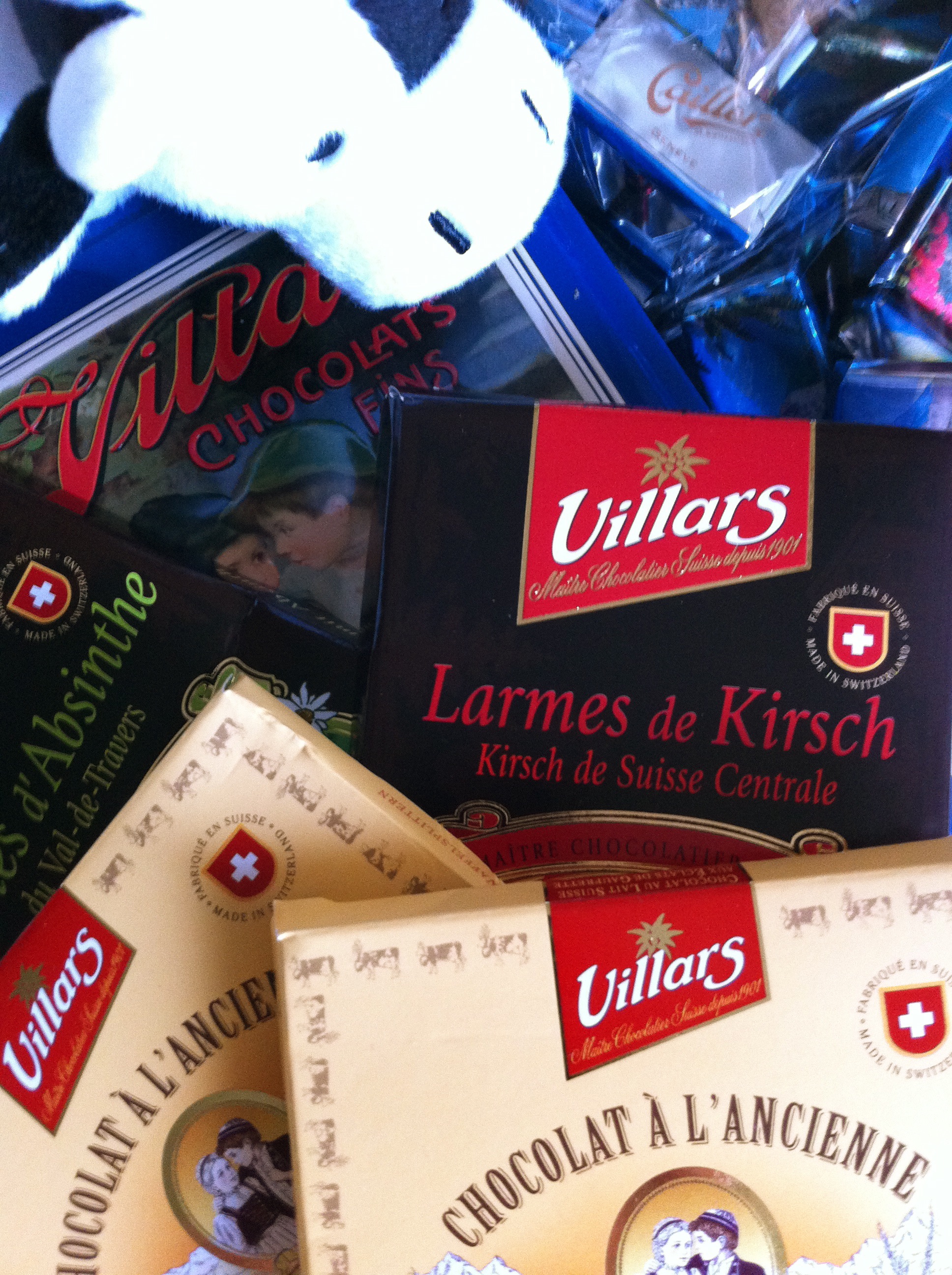 Il y a bien sûr Cailler, plus ancienne marque de chocolat suisse, qui appartient aujourd’hui à Nestlé. Mais mon coeur penche plutôt vers Villars. Fondée en 1901, la Fabrique de chocolat propose des saveurs comme «Absinthe» (j’ai détesté à cause du goût anisé), «Kirsh» (miam!), À l’ancienne, avec des éclats de bricelets caramélisés (un délice!) et larmes d’Edelweiss (que je n’ai pas goûté et je le regrette). Sans oublier l’incontournable Lindt, bien sûr.