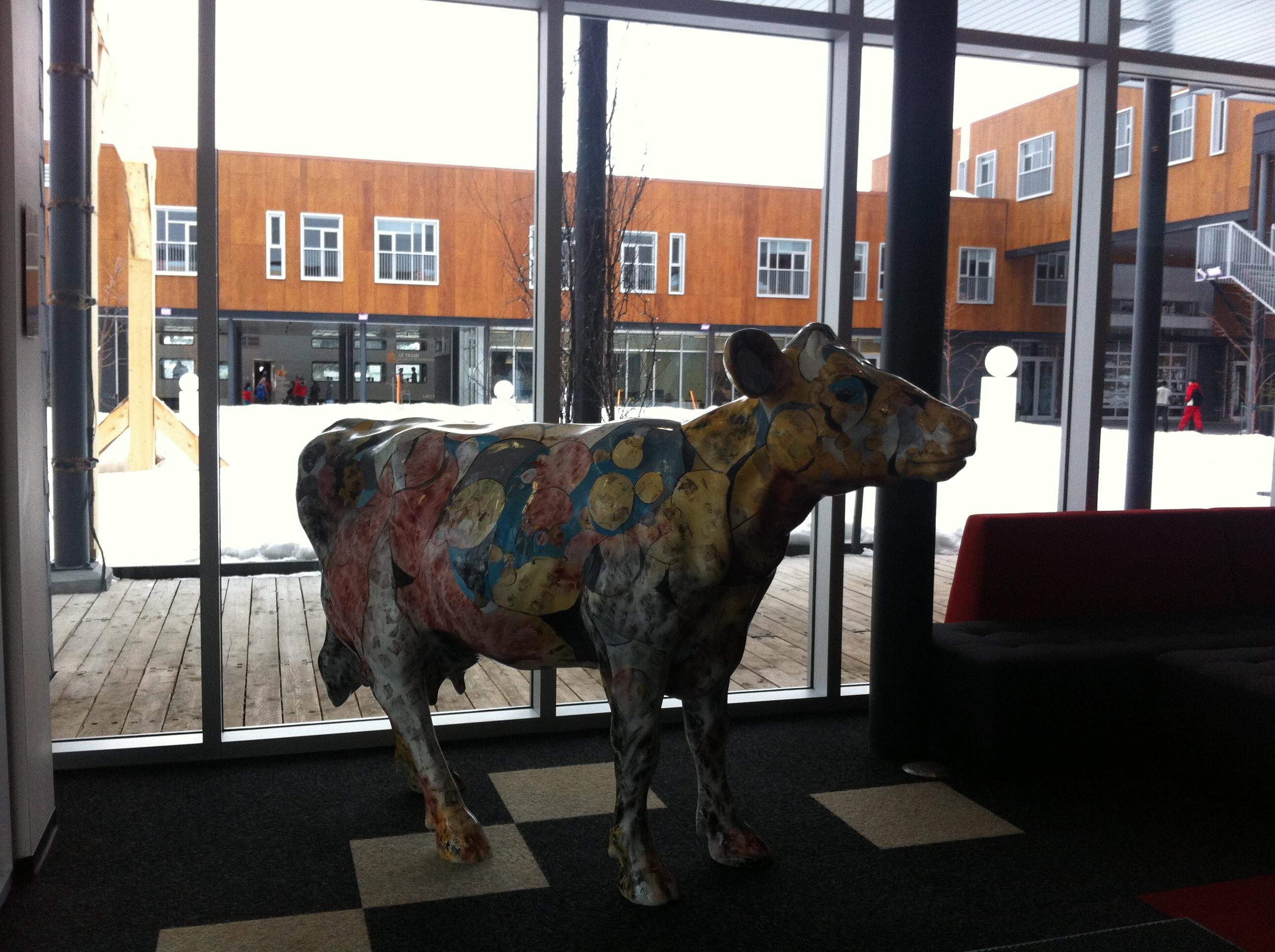 Cette vache canadienne en format réel, qui se trouve dans l’une des pièces communes, a été peinte par l’artiste Jimmy Perron, de l’Isle-aux-Coudres, lors du festival de peinture Rêves d’automne