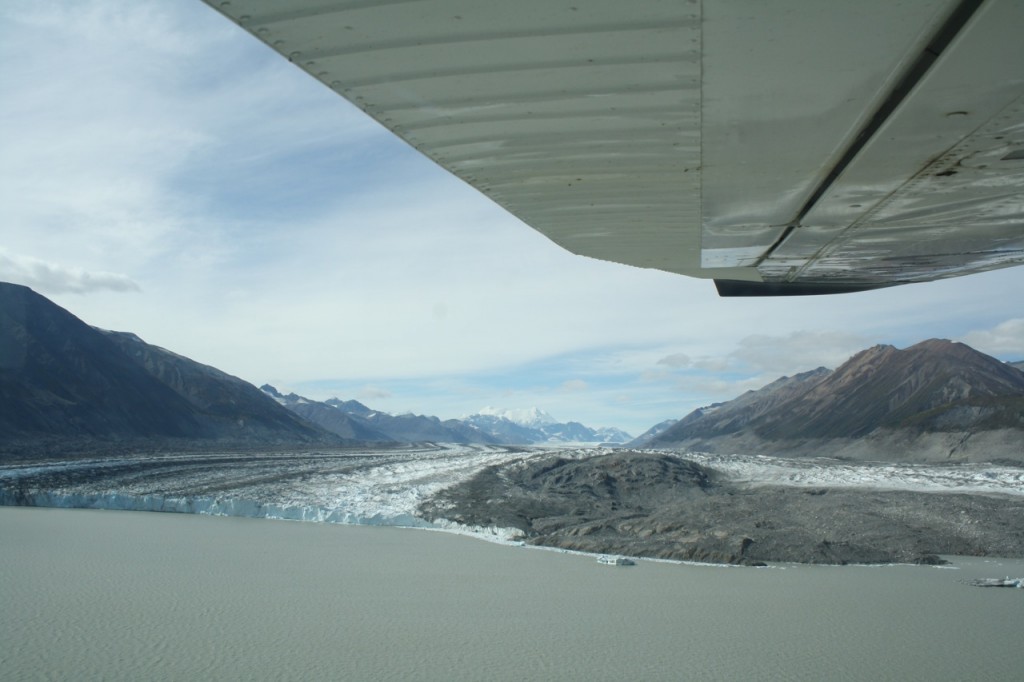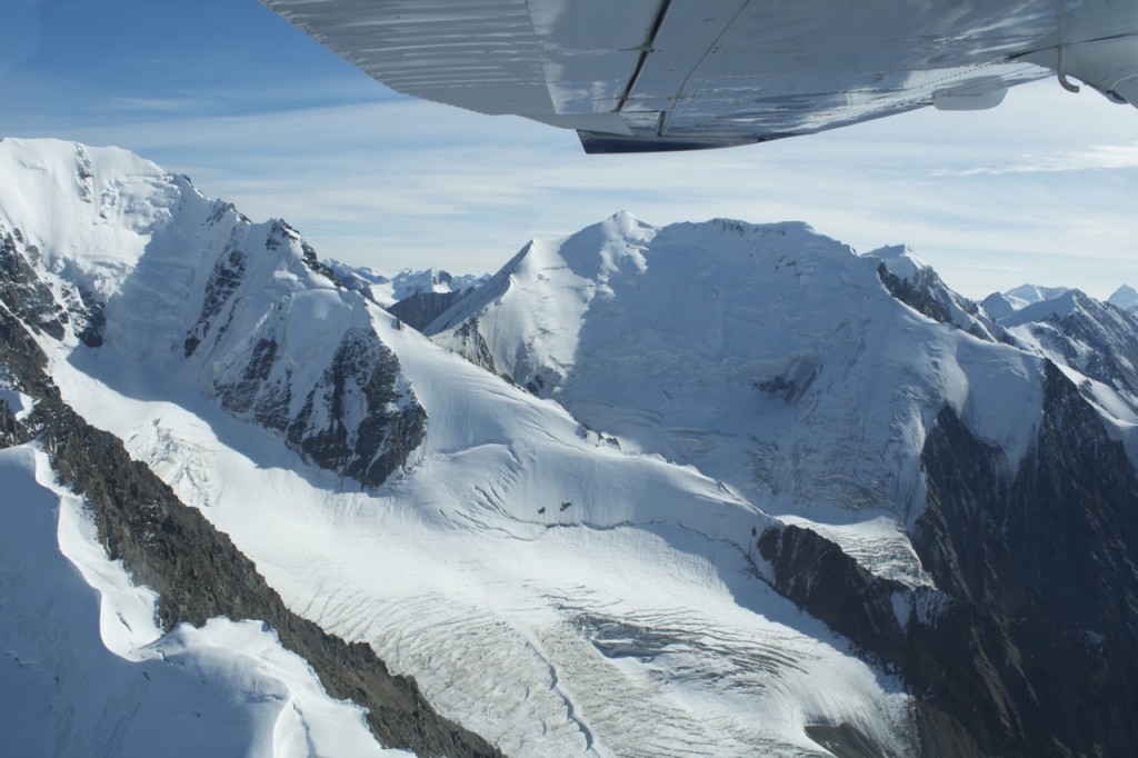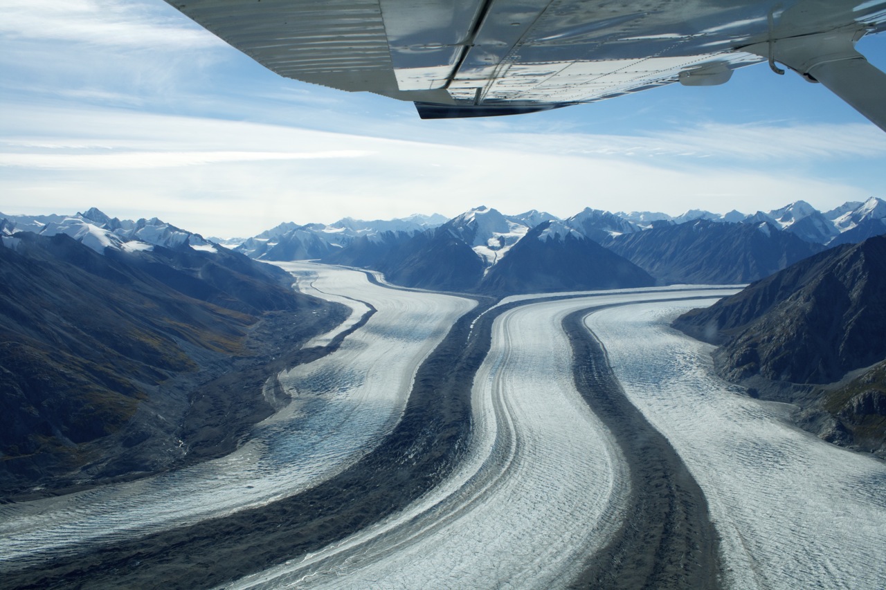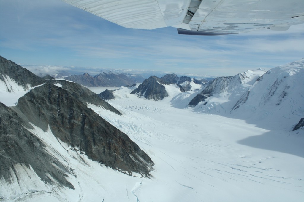 Durée prévue du vol: 75 minutes. Nous aurons notamment l’occasion de voir le mont Logan, plus haute montagne au Canada, et les champs de glace.