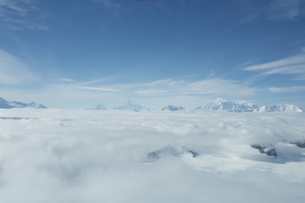 Du haut de ses 5959 mètres, le mont Logan surgit d’un champ d’écume.