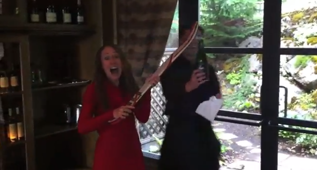 Hystérique. J’étais complètement hystérique après avoir sabré ma première bouteille de «champagne» (en réalité un mousseux de la Vallée de l’Okanagan) en juillet 2012. Je vous raconte…