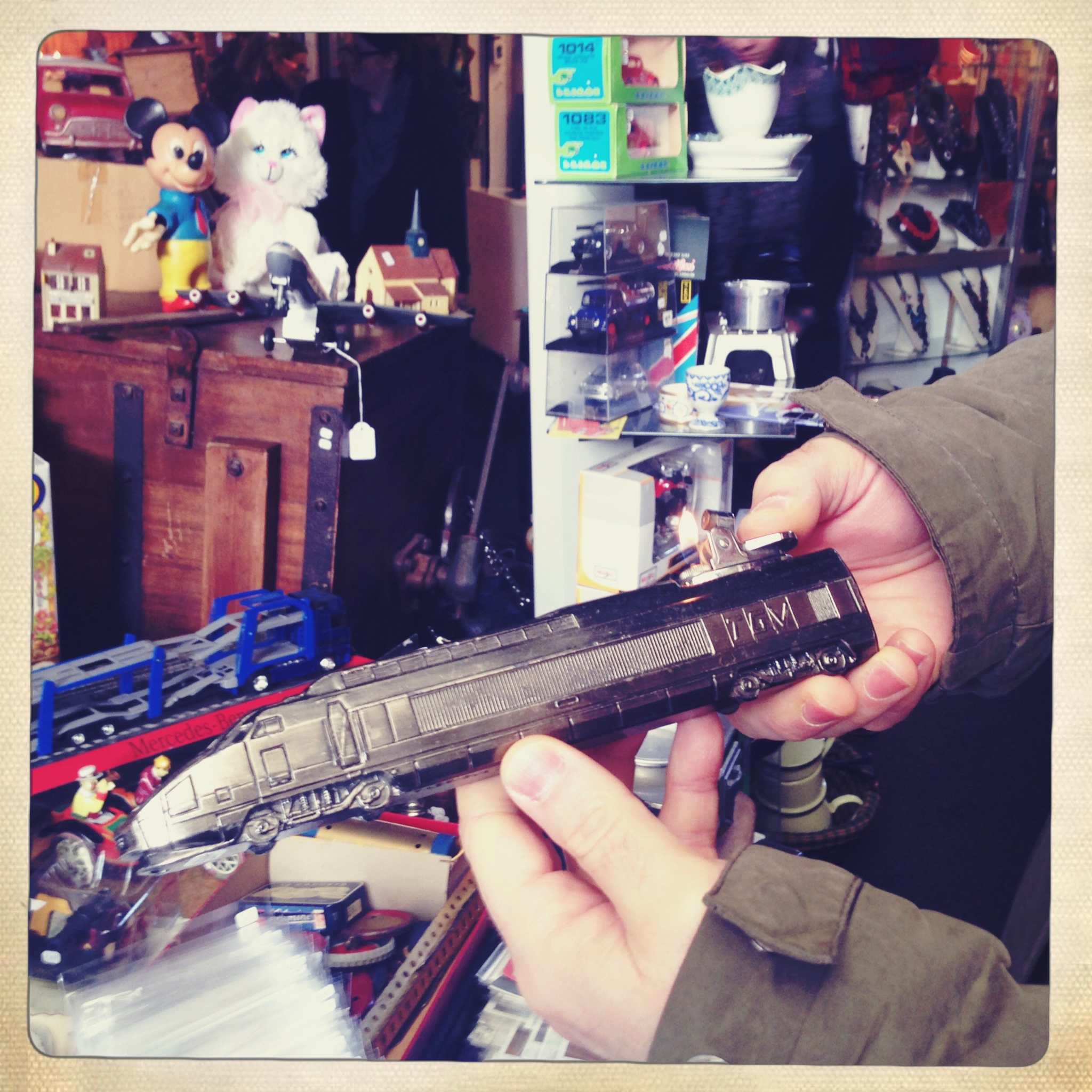 Oui, on trouve de tout. Tout comme un canard jaune géant. Tout comme un chalet de ski portable en forme d’ovni construit en 1968. Des meubles anciens hors de prix. De vieilles cartes postales et des affiches de collection. Un briquet de la SNCF en forme de train. Manuela qui interprète Piaf Chez Louisette, temple du kitsch. Et de vieilles malles Louis Vuitton dont les prix vont de 300 à 19 000 euros (je suis devenue hystérique chez Red Rose!).