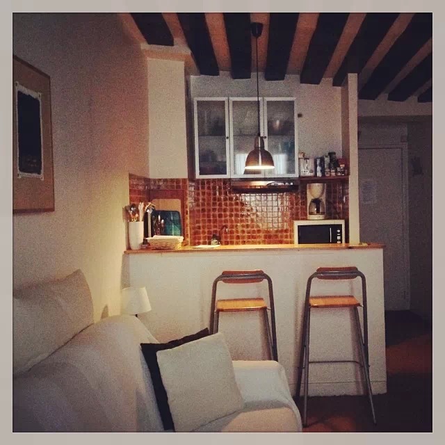 L’appart de la rue Quincampoix est minuscule, mais parfait pour une ou deux personnes. À mon arrivée, Anne-Laure, de Loc’appart, prend le temps de m’expliquer où se trouvent le métro, les meilleurs croissants du coin et quelques bons restos (elle a vite compris que ce n’est pas moi qui vais me mettre le nez dans les chaudrons – tous les apparts de l’entreprise contiennent le matériel nécessaire pour mitonner de bons petits plats, si vous en avez le courage).