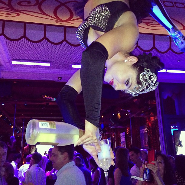 Une fille suspendue vous sert du champagne la tête en bas? C’est normal. Michael Jackson bavarde avec Elvis? C’est normal. Croiser des filles qui mesurent huit pieds (j’exagère UN PEU) en microrobes à paillettes à 8h du mat’ dans le lobby de l’hôtel? Normal. D’autres questions?