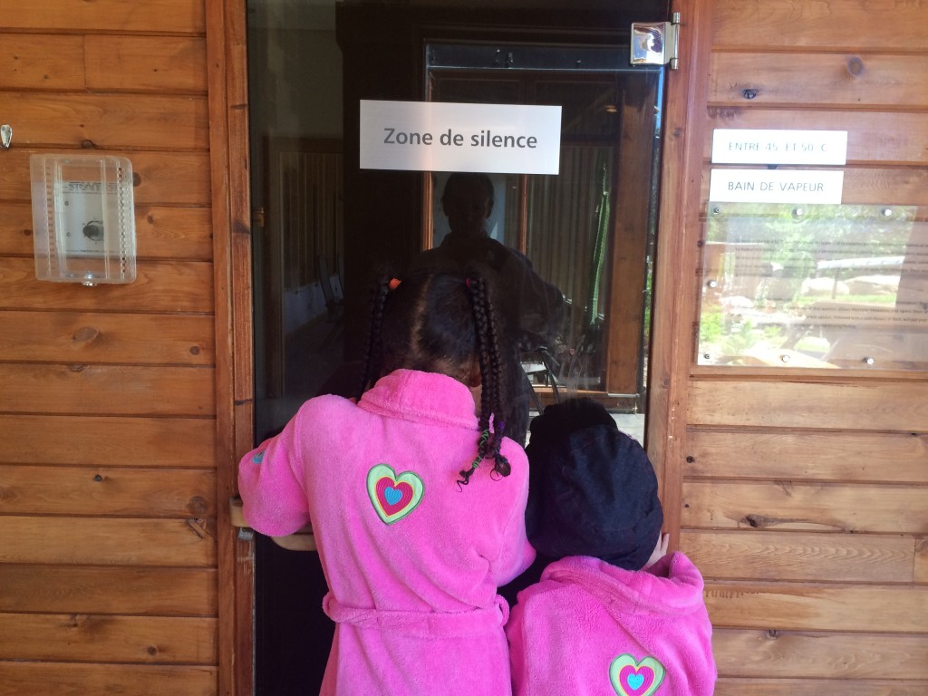 On décroche instantanément en franchissant les portes du site, même avec deux fillettes surexcitées. En plus de faire la routine thermique (moins longtemps pour les enfants – rester 15-20 minutes dans le bain de vapeur ou le sauna comme pour les adultes n’est pas recommandé), nous avons eu droit à 30 minutes de massage en tandem. Ainsi, pendant que Natasha déliait les petits noeuds de Maya, moi, je me faisais «torturer» par Lucas, sans doute l’un des massothérapeutes les plus douloureusement efficaces à qui j’ai confié mon dos ces dernières années. Je savais que je lui en voudrais le lendemain (ouille! les courbatures!), mais franchement, j’avais grand besoin de ce traitement de choc. Merci, merci!