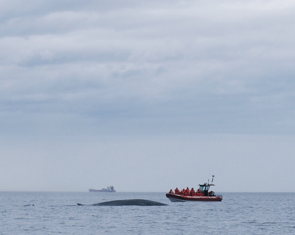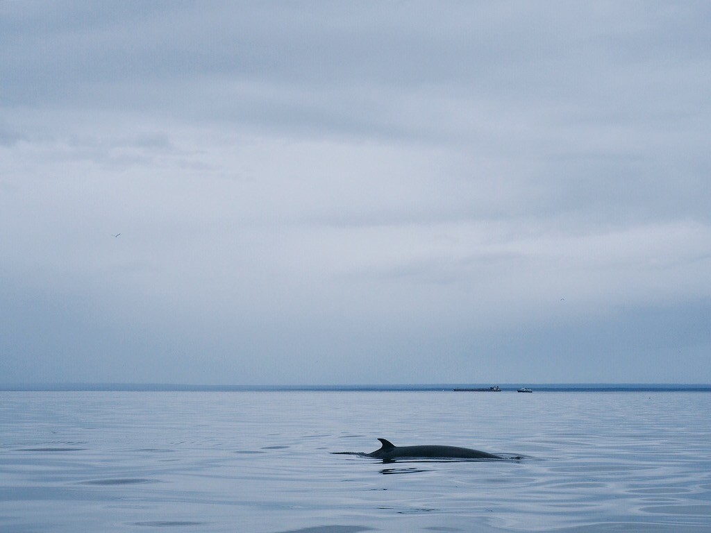 Pendant les deux heures de notre balade, nous avons droit à un véritable feu roulant. Nous apercevons même un petit rorqual qui joue à saute-mouton dans le sillage d’un bateau de marchandises. Déluge de points d’exclamation.