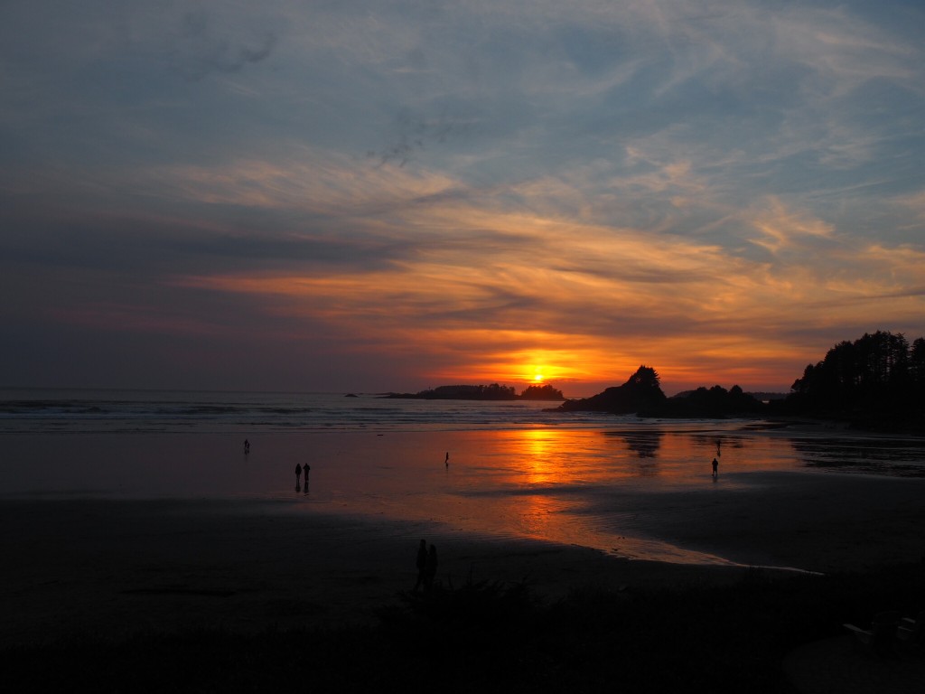 Coucher de soleil sur Cox Bay, depuis le restaurant Great Room du Long Beach Lodge