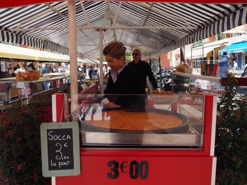 Impossible de passer à Nice sans goûter à la Socca, qui s’apparente à une crêpe faite de farine de pois chiches mélangée à de l’huile d’olive et cuite sur une plaque.
