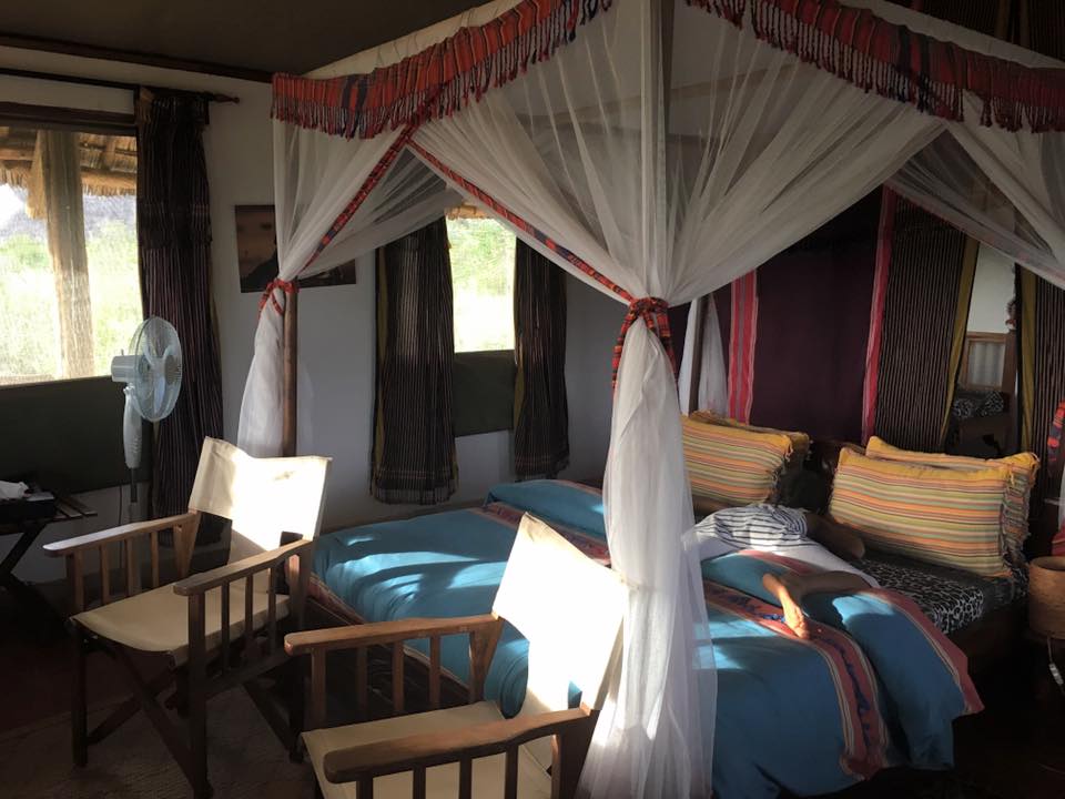 Nous reprenons la route vers le lac Manyara. Après cinq nuits sous la tente, nous dormirons au Tigintana Lodge, au bord du lac Manyara. Nous devenons tous hystériques en découvrant nos chambres !