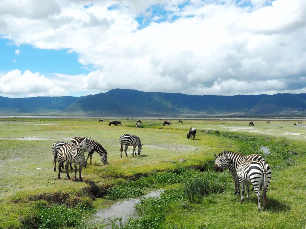 Reconnu pour la richesse de sa faune, le cratère du Ngorongoro, dont le diamètre fait plus d’une vingtaine de kilomètres, nous permet d’apercevoir nos premiers rhinocéros noirs. Ça y est, nous avons maintenant vu les « Big Five » ! Ce sont les seuls rhinos que nous aurons croisés pendant ces six jours à sillonner le nord de la Tanzanie.