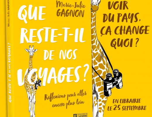 Fébrilité. Fierté. Humilité. Angoisse. Je suis traversée par une foule d’émotions alors que mon essai Que reste-t-il de nos voyages? Réflexions pour aller encore plus loin, publié aux Éditions de l’Homme, s’apprête à voir…